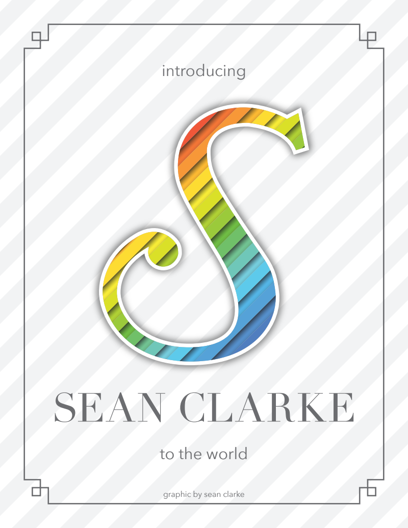 The S stands for Sean, as I'd hope would be obvious. I decided to use a rainbow design with a flashy letter shape to convey a sense of creativity, or something along those lines. To match the letter, I put stripes on the background as well.