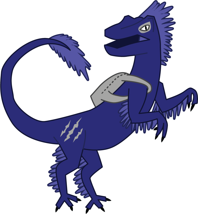 For this, I decided to stick to simply a velociraptor rather than incorporating human elements into the design. The feathers are inspired by the fact that velociraptors most likely had them in real life, and I used them to make a more distinct style for the character. Also included is a backpack and a claw mark design, showing the connection to students at LASA.